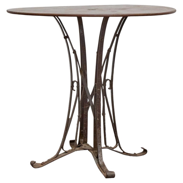 Measuring 31 inches in height and 28.5 inches in diameter, the table is well proportioned for intimate outdoor dining, afternoon coffee, or as a decorative centerpiece surrounded by potted plants. With its rustic charm and enduring materials, this French iron garden table will lend warmth and authenticity to any setting, indoors or out.