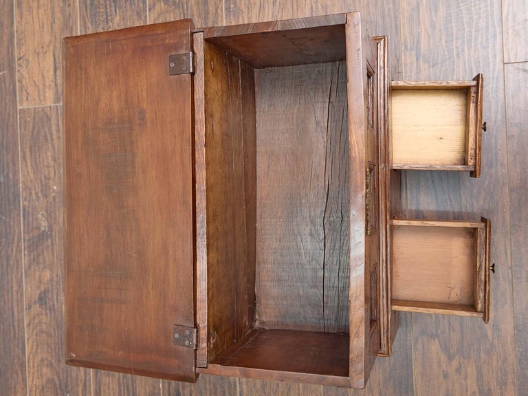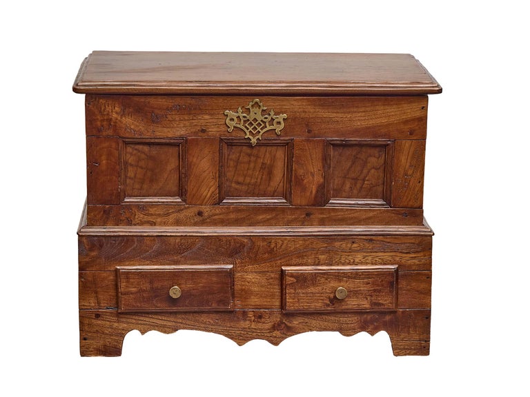 The mellow patina speaks to its age, with a surface that has developed warmth and depth over time. Both functional and decorative, this compact chest can serve at the foot of a bed, in a hallway, or as a small coffee table alternative, bringing 19th-century English charm and utility to any setting.