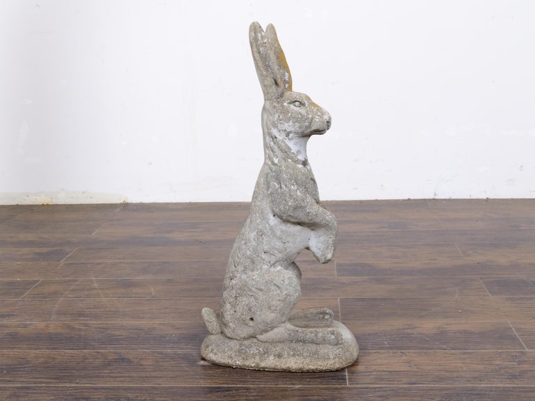 English Cast Stone Garden Rabbit Sculpture with Weathered Patina, Circa 1920