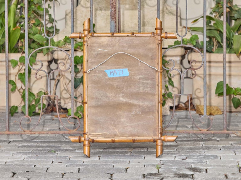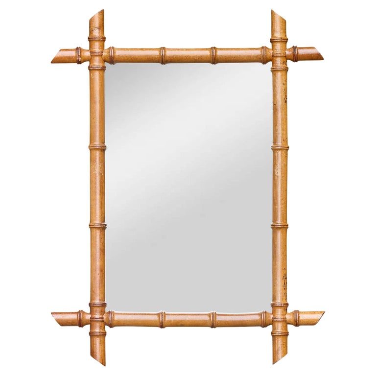 This French faux bamboo mirror, dating to circa 1900, offers a classic example of early 20th-century craftsmanship with an understated exotic twist. Its warm honey-toned frame mimics the segmented look of bamboo, a design that was highly fashionable in the late 19th and early 20th centuries for its blend of European elegance and Far Eastern inspiration.
