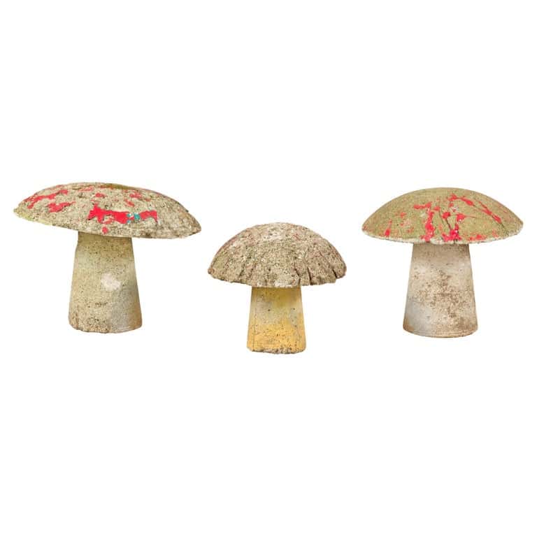 Set of Three American Midcentury Painted Concrete Mushroom Garden Ornaments